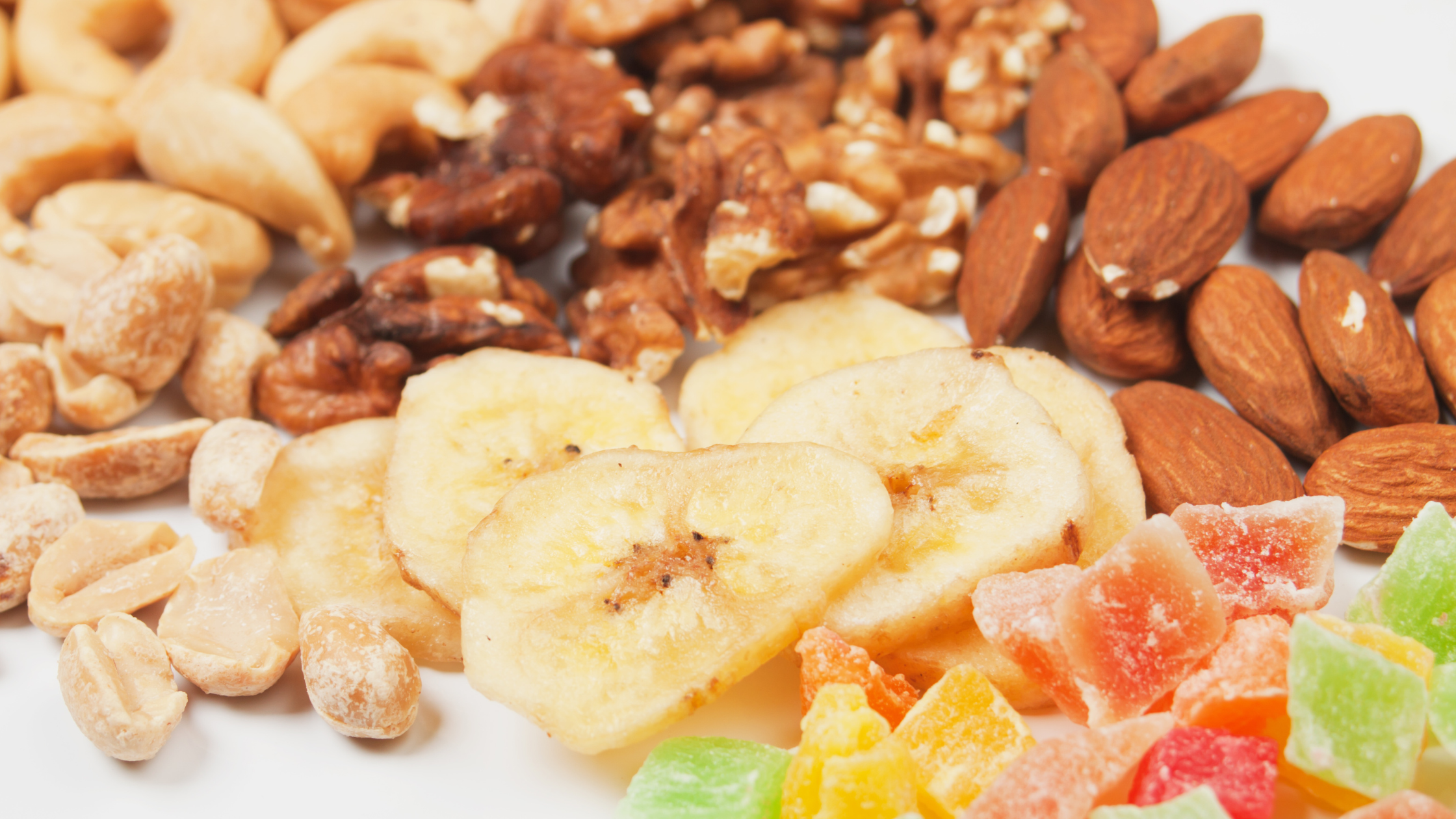 女性に多い鉄分不足には、ドライプルーンやレーズンなど鉄分を多く含む果物が有効です。鉄の吸収を高めるビタミンCも含まれているため、効率よく補えるのが魅力です。また、エネルギー補給をしたいときには、糖質とミネラルがバランスよく含まれたバナナチップのほか、カシューナッツやかぼちゃの種などのナッツをミックスするのも良いでしょう。外出前や運動後の栄養補給としても活用できます。