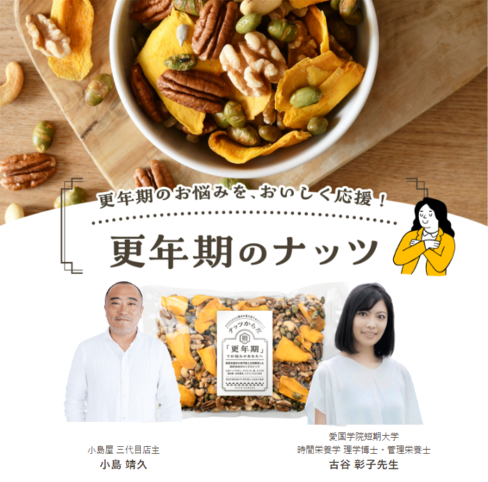 第1弾は更年期の悩みを美味しく応援する「更年期のナッツ」