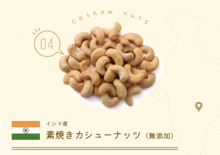 世界最大級の生産地でもあるインド産の中でも、甘みの深いカシューナッツを厳選しました。職人が少量ずつ手焙煎で、最大の特長である「甘み・コク・やわらかさ」を最大限引き出します。