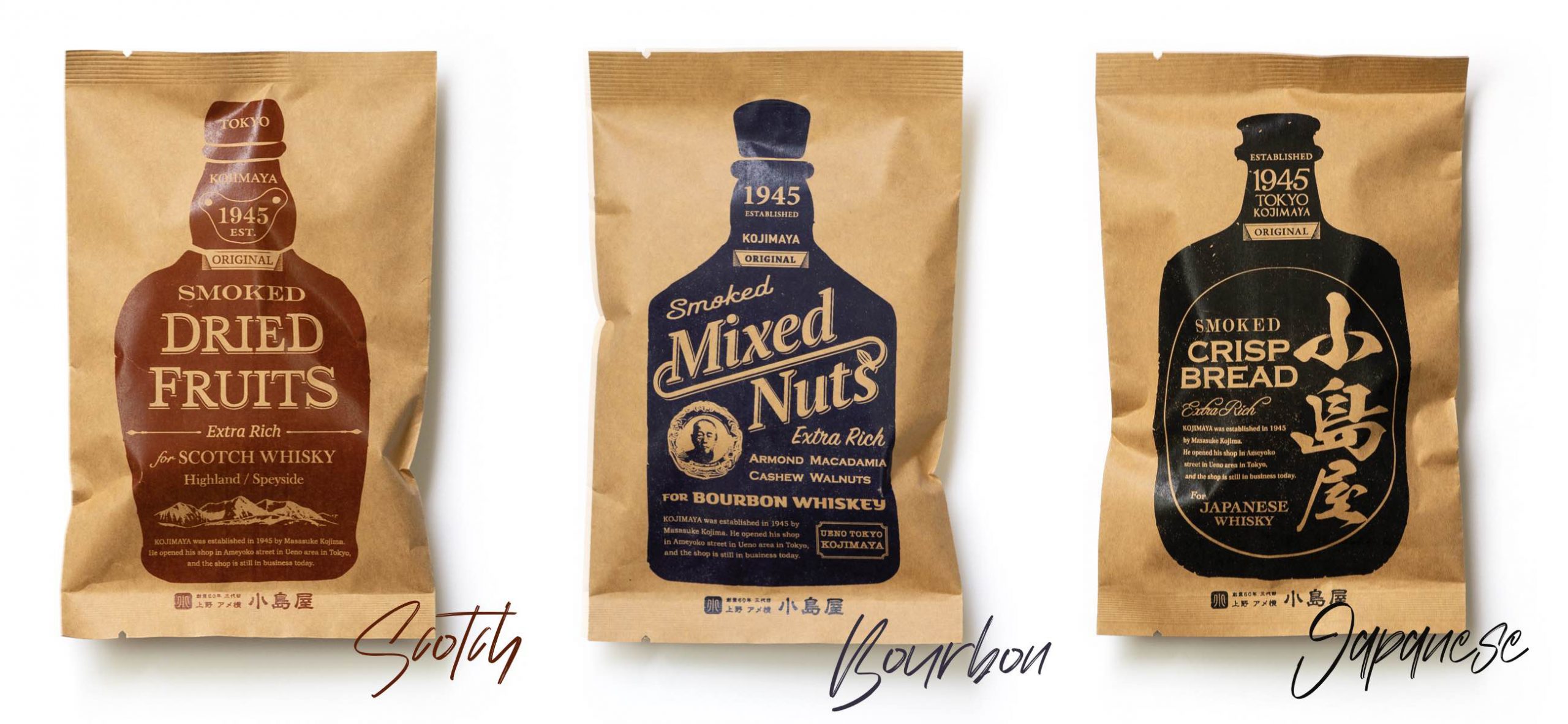創業60年となるドライフルーツとナッツの専門店上野アメ横小島屋は、ウイスキーのタイプ別に合わせて3種類のおつまみを新発売します。ウイスキーの種類別にハイランド系スコッチウイスキー専用の燻製メープルナッツ、バーボンウイスキー専用の燻製ドライフルーツ、ジャパニーズウイスキー専用の燻製クリスプブレッドです。これら3つのこだわりやおいしさの秘密をご紹介します。