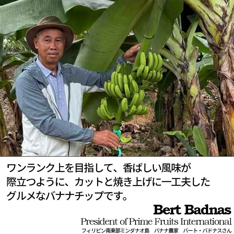 砂糖の使用を出来る限り減らし、バナナ本来の甘さを追求しました。また特殊製法で油の使用も少なめに仕上げたヘルシーなバナナチップスです。バナナチップ専用のバナナから作っているので香りも良いです。チップスなので鮮度にも気を配って輸入しています。