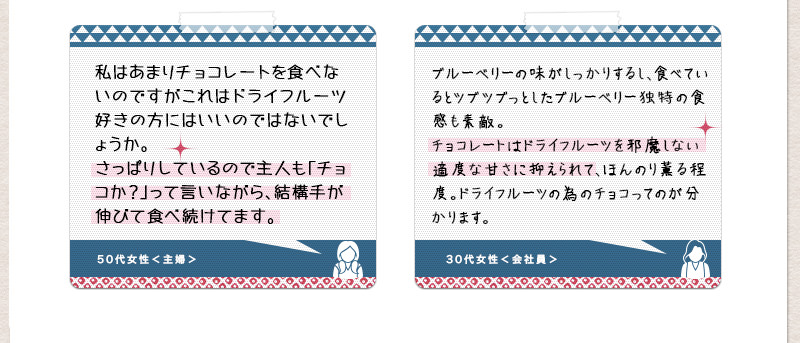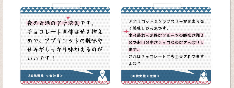 ワイルドブルーベリーの香りと甘酸っぱい味わいが、優しいチョコレートの味わいと、非常にバランスが良く仕上がっています。