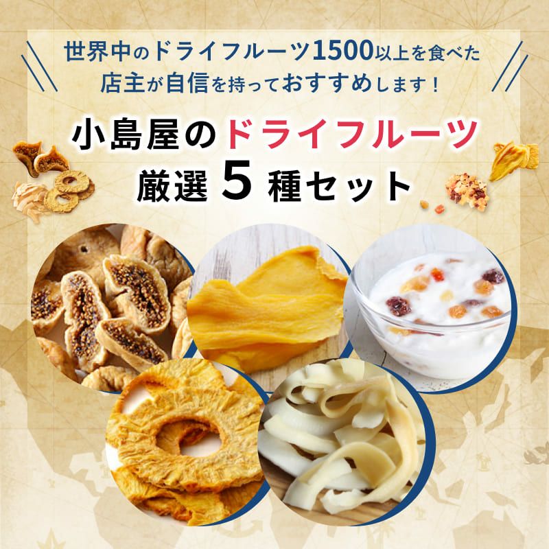 小島屋のドライフルーツ厳選5種セットをご用意しました。
