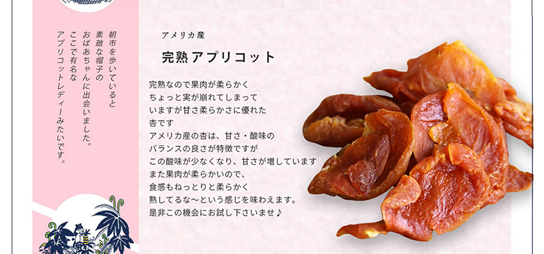 小島屋の『高級ドライフルーツシリーズ』は、原料の選定から加工方法までこだわり抜いた、ワンランク上の品質を追求したシリーズです。特に糖度や香り、果肉のしっとり感に優れたフルーツを使用し、素材の魅力を最大限に引き出すよう低温で丁寧に仕上げています。例えば、「厚切りマンゴー」や「大粒プルーン」「クランベリーホール」などは、食べた瞬間に違いを感じられる豊かな風味と食感が特長。ご自宅用はもちろん、ギフトとしても大変人気で、「素材の良さが伝わる贈り物」として選ばれています。上質な味わいを求める方や、特別感のあるドライフルーツをお探しの方にぴったりのシリーズです。