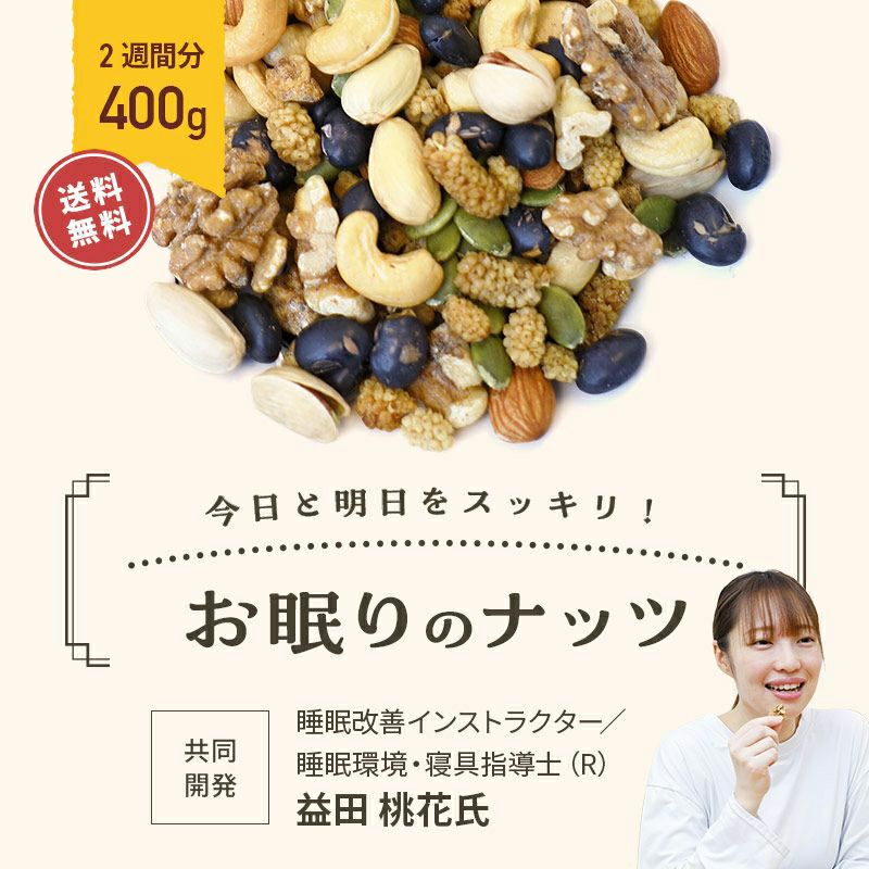 今日と明日をスッキリ! 睡眠改善インストラクターと作りました。 送料無料:お眠りのナッツ《400g》(200g×2袋) おやすみミックスナッツ