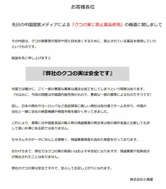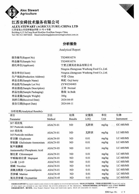 弊社のクコの実では安全性を確認しております。