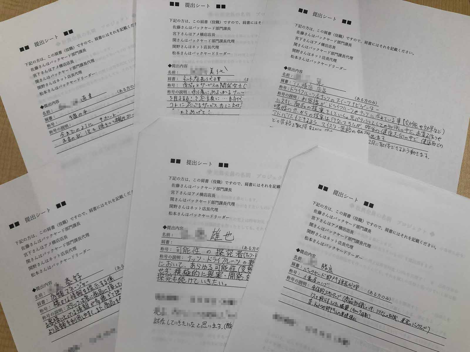 課長、部長などは役職だけでなく、それ以外に目指すべき仕事像を称号として各自決めた上での各々の目標設定を完了する