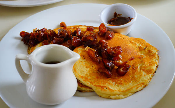 朝から甘いパンケーキは、もう食べられない年齢なんですが・・・