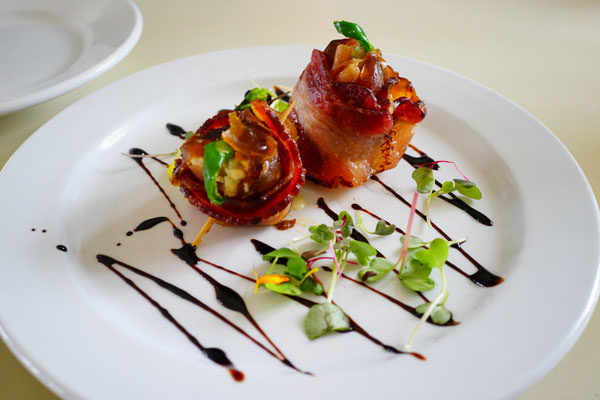 ベーコンでまかれた中は、デーツ