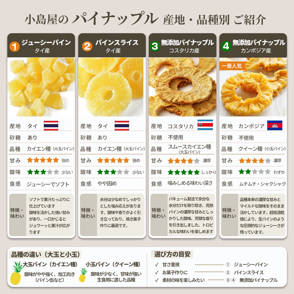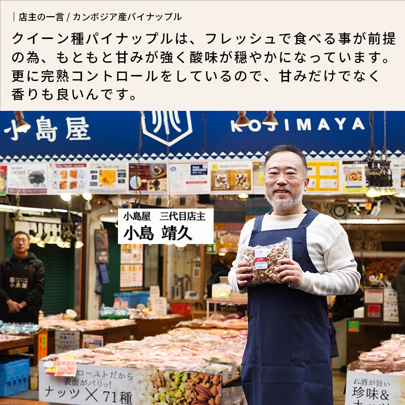 他の画像を見る 最大の特徴は、圧倒的なジューシーさ、そして食感。超低温乾燥ならではの、ムチムチ、シャクシャクとしたフレッシュパインの食感を感じる果肉感があります。 店主が一番美味いと思う至極のカンボジア産 ドライパイナップル《400g》 販売価格 ¥ 2,883 税込 【マツコの知らない世界で紹介された】東京上野・アメ横に実店舗も構える小島屋では、完全無添加、砂糖不使用の完全無添加のドライパイナップルを仕入れています。様々なドライフルーツを食べた店長がこれは!と一押しするドライパインです。ヨーグルトにも最適。 お気に入りに登録する 商品を詳しく見る
