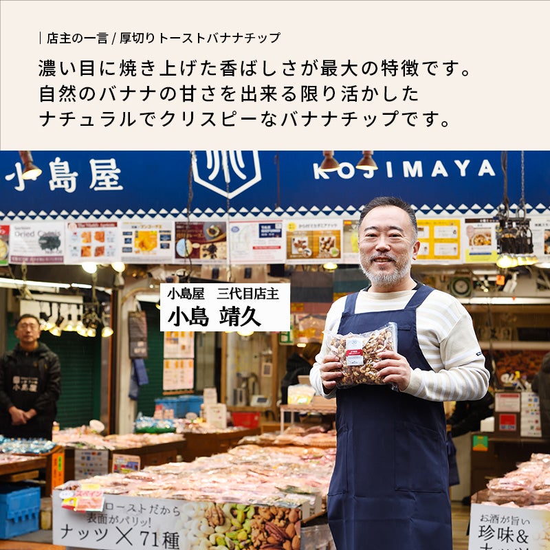 他の画像を見る <バナナチップ専用バナナから作られました♪>【ドライフルーツ専門店の新鮮な品をお届けします】 伝説のブラウンローストバナナチップス《400g》 販売価格 ¥ 1,188 税込 小島屋一番人気のバナナチップがこちら。砂糖の使用は極々少なくしており、自然で素朴なバナナの甘みを楽しめます。また、食感と風味をよくするために厚切りにスライスしてカリっとトーストしています。芋ケンピの様な素朴な味わいで美味しいと言われます。 お気に入りに登録する 商品を詳しく見る