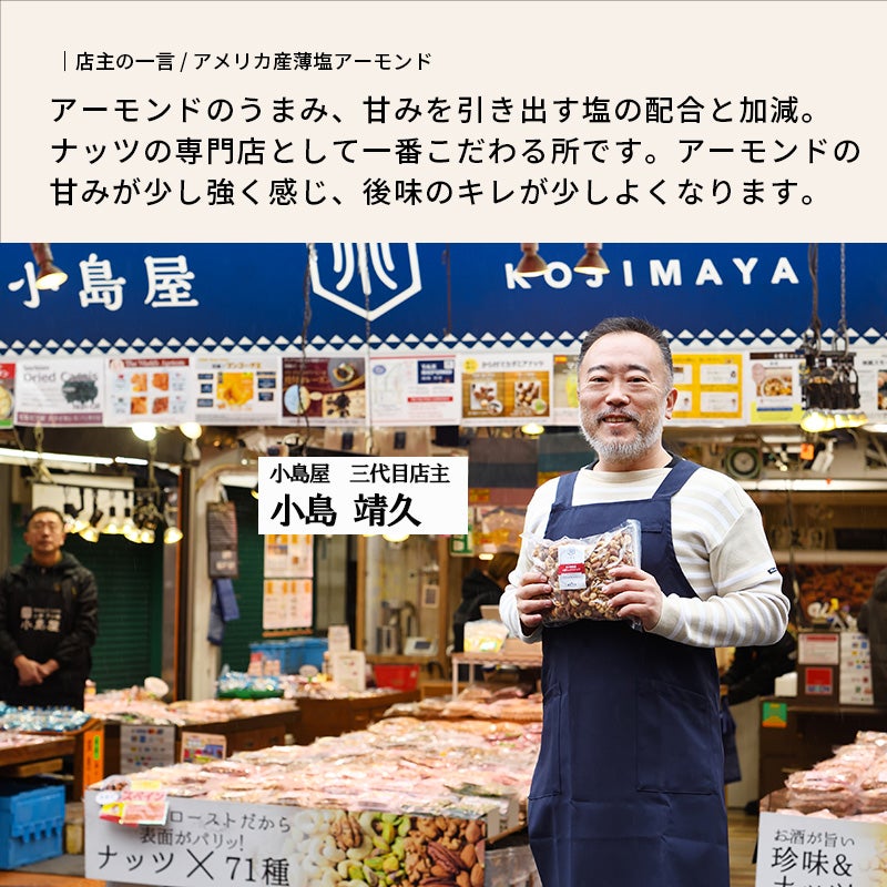他の画像を見る <薄塩仕立て:熟練職人さんの手仕事焙煎>【ナッツ専門店の新鮮な品をお届けします】 薄塩仕立て:ローストアーモンド[カリフォルニア産]《500g》 販売価格 ¥ 1,987 税込 【銀座や六本木のバーにも多数ご使用頂く】東京上野・アメ横に実店舗も構える小島屋では、カリフォルニア産のアーモンドを職人が手仕事で直火焙煎ローストをした薄塩ローストアーモンドを販売しています。ウイスキーへの相性がよく、バー御用達でお酒のおつまみに最適。 お気に入りに登録する 商品を詳しく見る