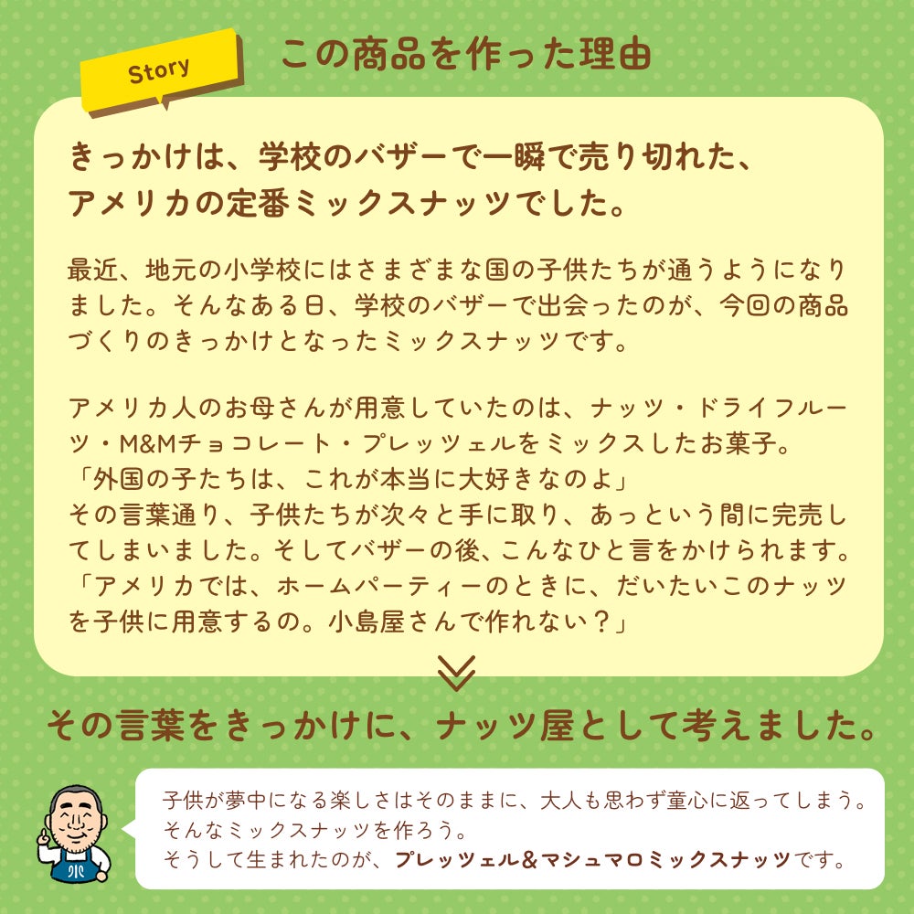 他の画像を見る 大人も子供に返る、アメリカンなパーティースナック♪ 食べる直前に完成させる! 送料無料:あといれマシュマロ!カリふわ♪プレッツェルミックスナッツ《540g》(180g×3袋) 販売価格 ¥ 4,482 税込 ※申し訳ございませんが、北海道は+322円 沖縄は+828円頂戴いたします。 お気に入りに登録する 商品を詳しく見る