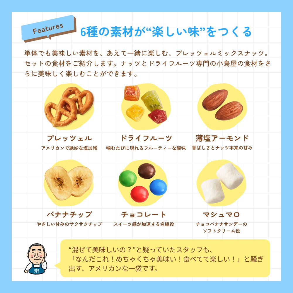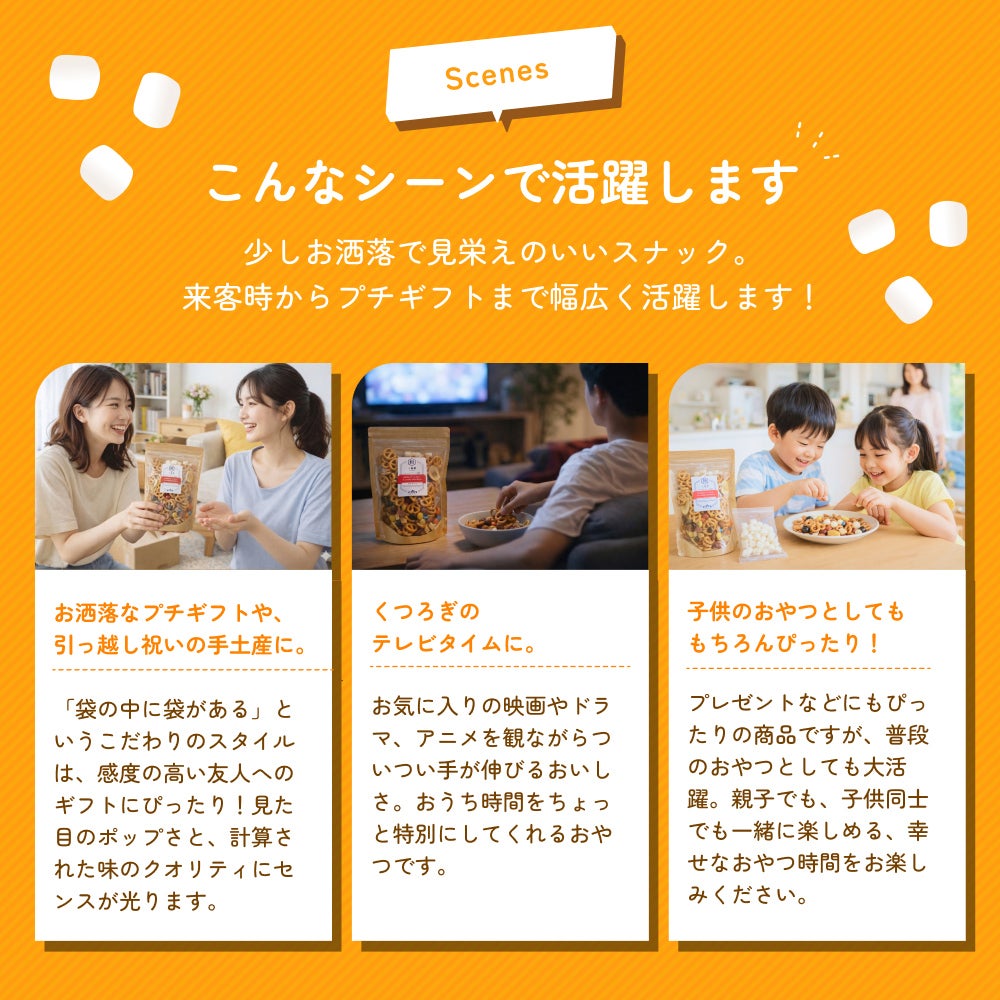 他の画像を見る 大人も子供に返る、アメリカンなパーティースナック♪ 食べる直前に完成させる! あといれマシュマロ!カリふわ♪プレッツェルミックスナッツ≪180g≫ 販売価格 ¥ 1,587 税込 ※申し訳ございませんが、北海道は+322円 沖縄は+828円頂戴いたします。 お気に入りに登録する 商品を詳しく見る